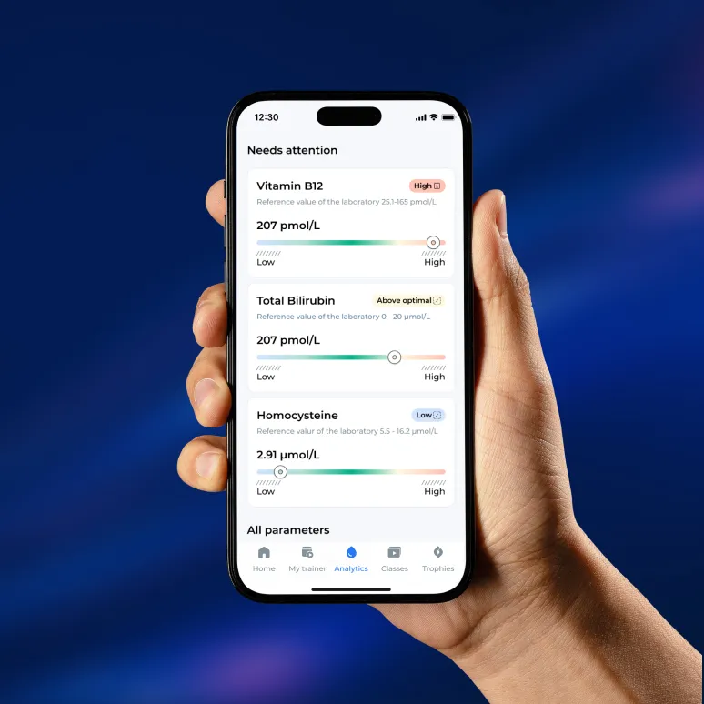 Upload your recent blood test or take a new one with our partner clinics. Combine it with a short health assessment — and uncover what your body actually needs.